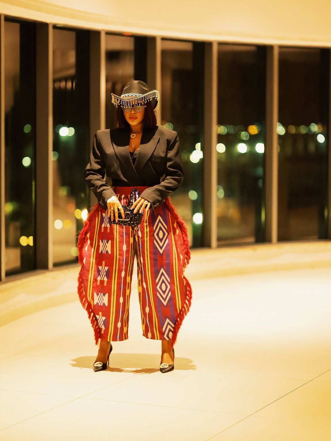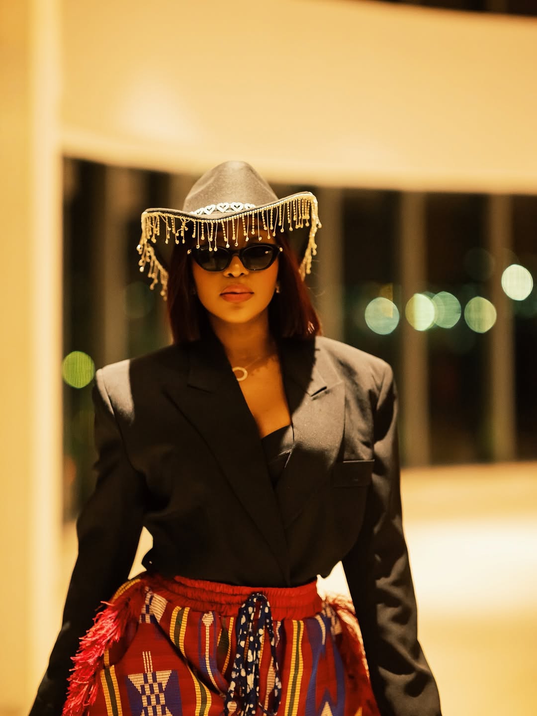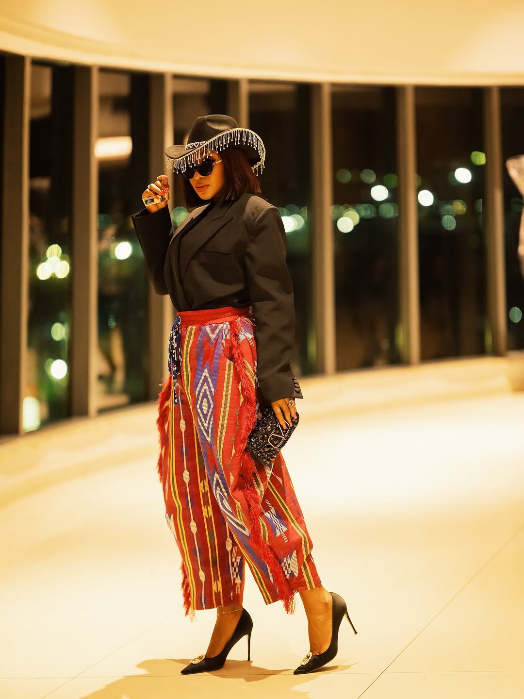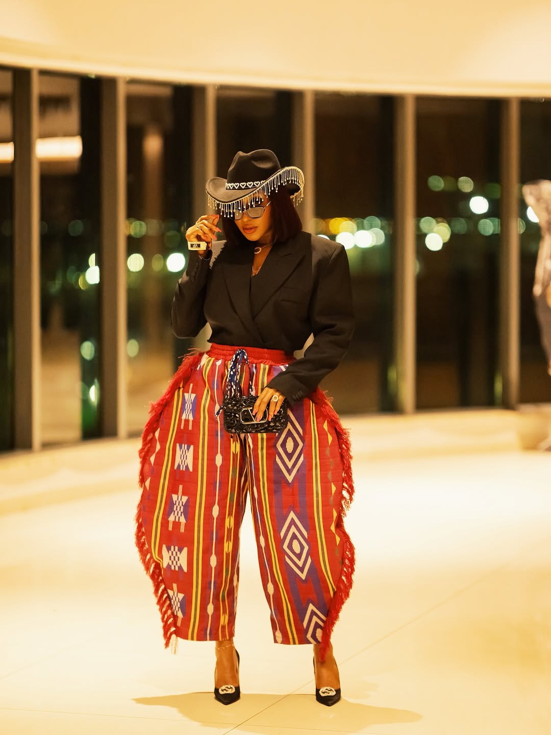 For the “Superstar” premiere, Nancy said “subtlety is overrated” and arrived as a literal golden goddess. That Xtrabrides crop top and thigh-high slit skirt combo was so shiny, we’re pretty sure astronauts could see it from space. The matching headscarf? Chef’s kiss. It’s what we imagine a Nollywood queen would wear if she won the lottery.