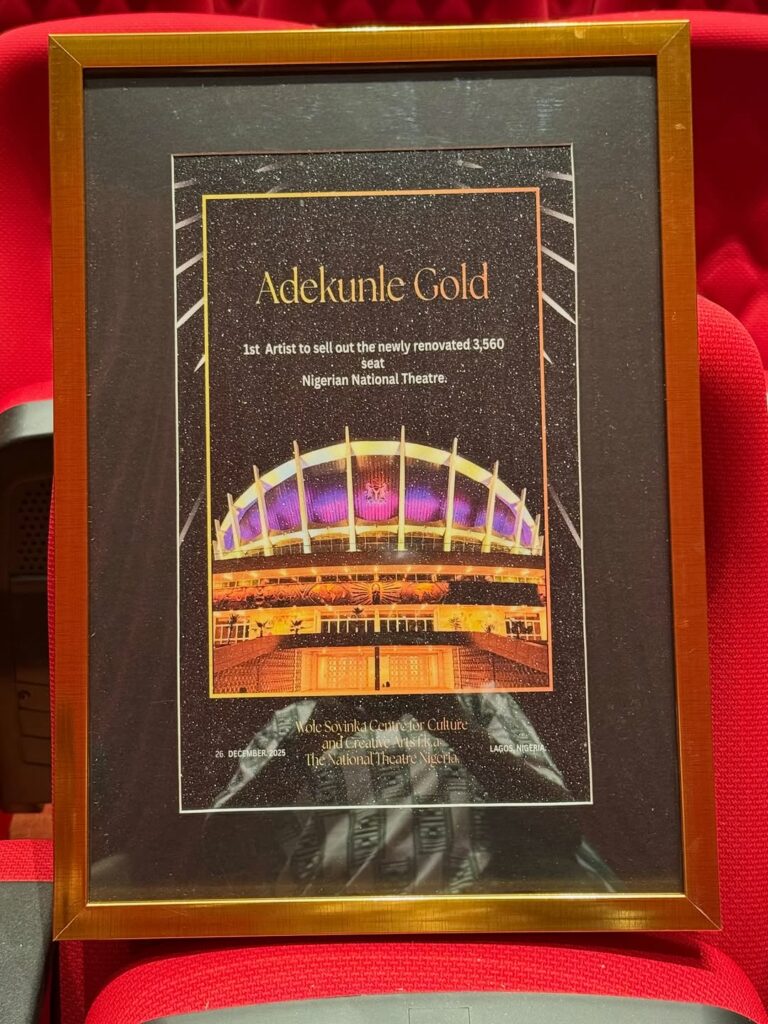 Adekunle Gold became the first artiste to sell out the newly renovated National Theatre, following it’s renaming as the Wole Soyinka centre for culture and creative arts. His concert on December 26, 2025, filled the 3,500-capacity hall just weeks after it’s reopening.