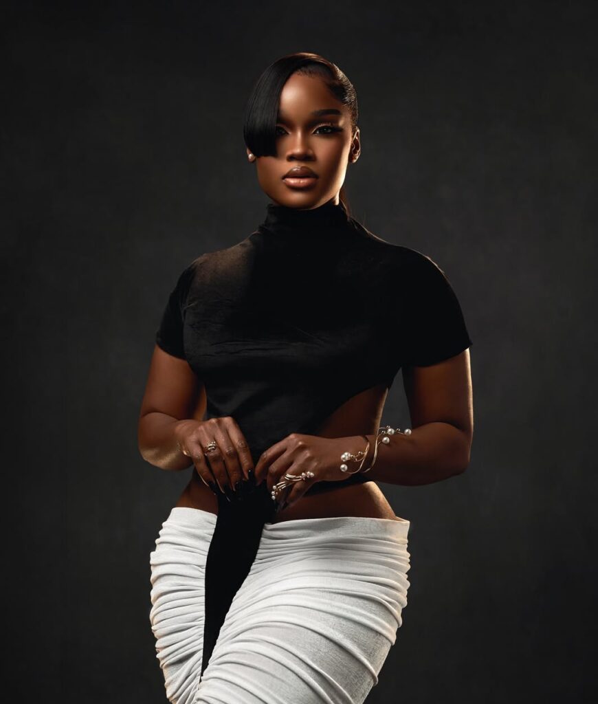 Birthday shoots on Nigerian Instagram often involve elaborate setups, props, and expressive poses. CeeC’s images, however, remain stripped-back. She stands confidently in the outfit, letting the cut, texture, and layering speak for themselves. The top’s cut-outs and the skirt’s ruching show that careful design and proportion alone can create a memorable impression. Even the lighting enhances the look, highlighting the structure and shaping of the fabric.