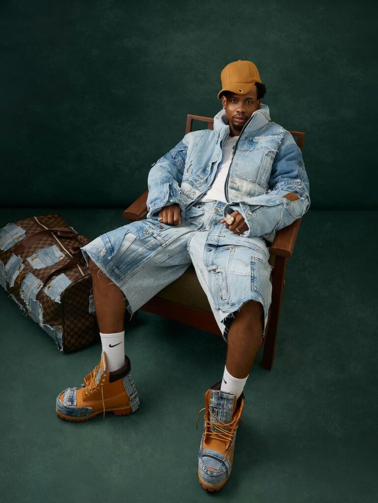 Ini Edo appears in a look that immediately feels fresh uncomplicated, confident, and rooted in a clear sense of style. Her latest outfit, a thoughtful blend of Ankara and denim by Betza Clothings and Betza Tribe, shows how she continues to mix familiar textures with a modern point of view.