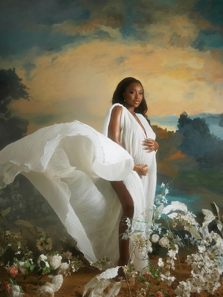 The couple got married in January 2019 and share a daughter, Adejare, fondly called Deja. Their shoot leans into a clean, coordinated style choice that focuses on their partnership and the arrival of their second child.