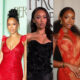 Sophie Alakija wore a red bodycon gown. The dress had star-shaped cutouts across it and the bottom had ruffles. She was styled in those old-school waves and she looked like who was featured in an 80s music video. Red really did own the colour red last night.