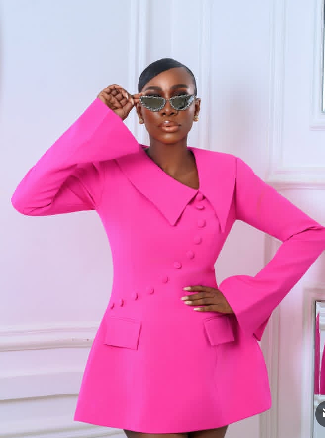 Medlin Boss has once again proven her impeccable style and flair for fashion. She rocks a pink blazer dress which leaves fans and fashion lovers alike in awe. Just as her audio caption says “She’s like a Star” and she owned up to it in this dress.
