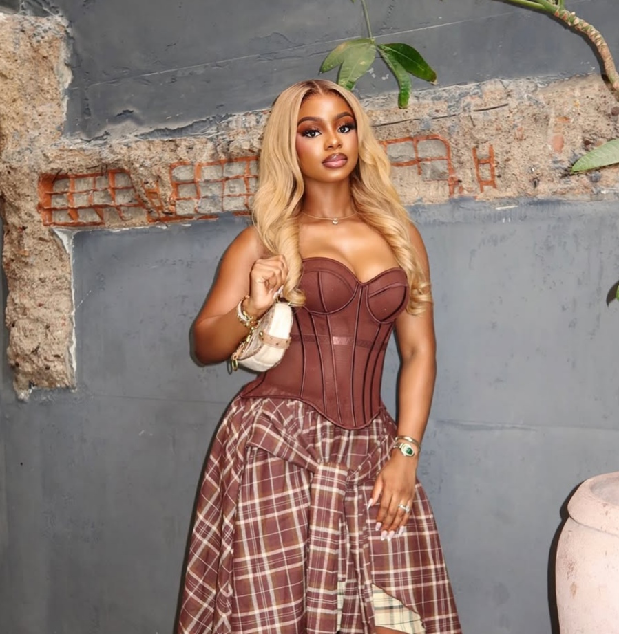 It is a completely different direction from the white off-the-shoulder corseted gown she wore to “The Return Of Arinzo” premiere just days earlier, and that contrast says allot about her personal style. She can go from sculptural bridal white to warm brown grunge, and both times, the looks felt well thought through.