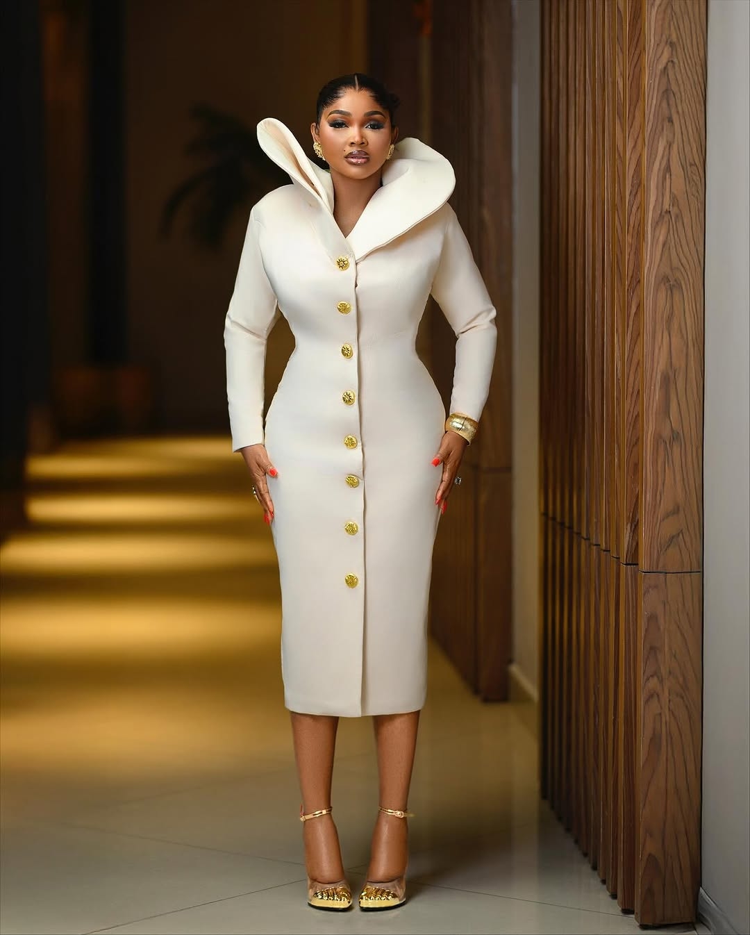 Mercy Aigbe Keeps it Sharp in Ivory Dress