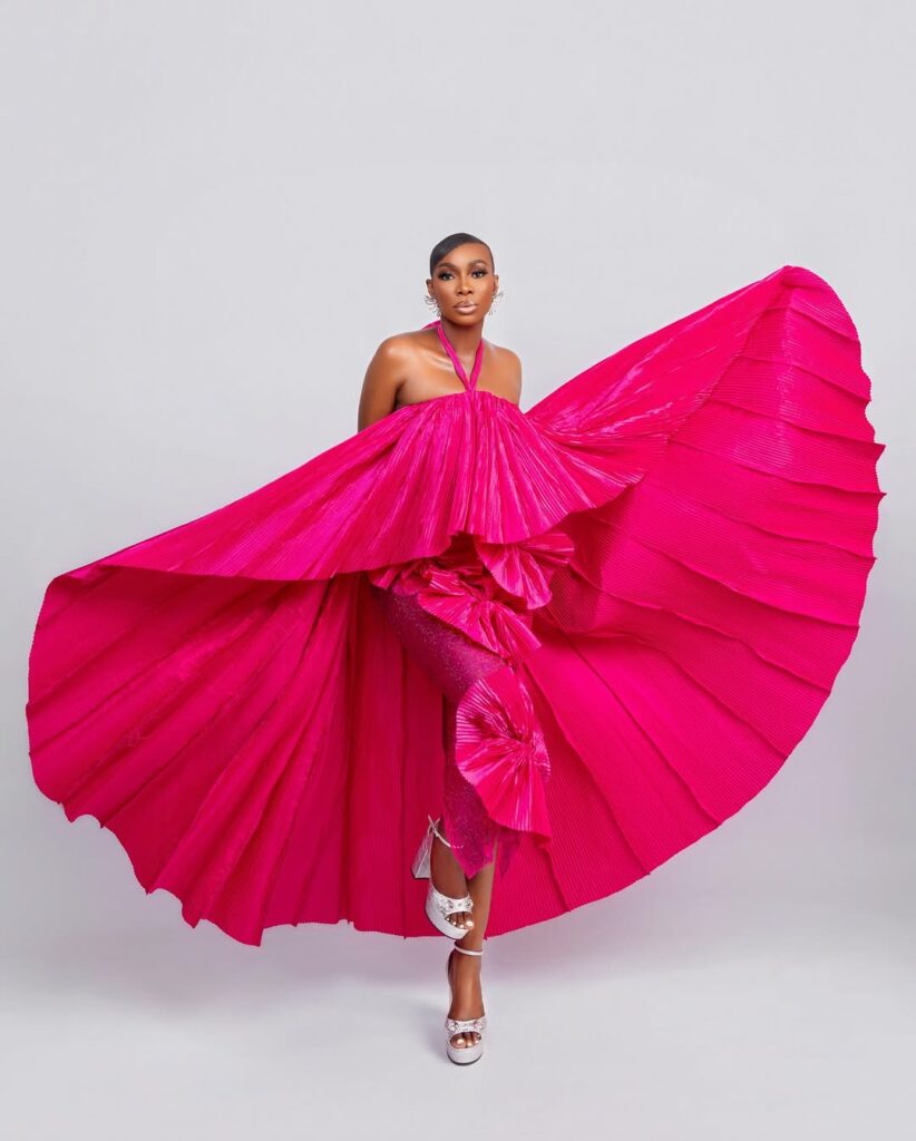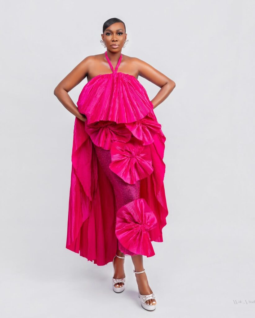 Mimi Yina was seen recently in a dress by Nigerian designer Weiz Dhurm Franklyn, and it was unique one. The hot pink colour was the highlight of the gown, but the details of the outfit are what makes the dress noticeable.